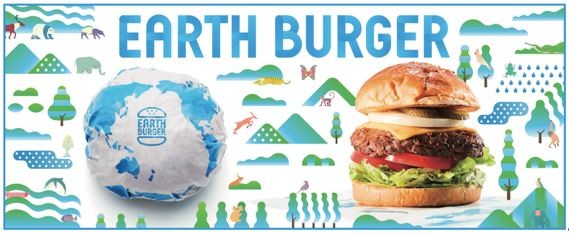 これは地球環境に配慮したハンバーガー「アースバーガー」を協力店で提供するというもの。森を壊さないパーム油やバター、牧場開拓において森林破壊をしていない地域の牛肉などを使用する。さらにアースバーガー1個の売上げにつき、100円が森林保護活動に寄付されるという仕組みだ。
