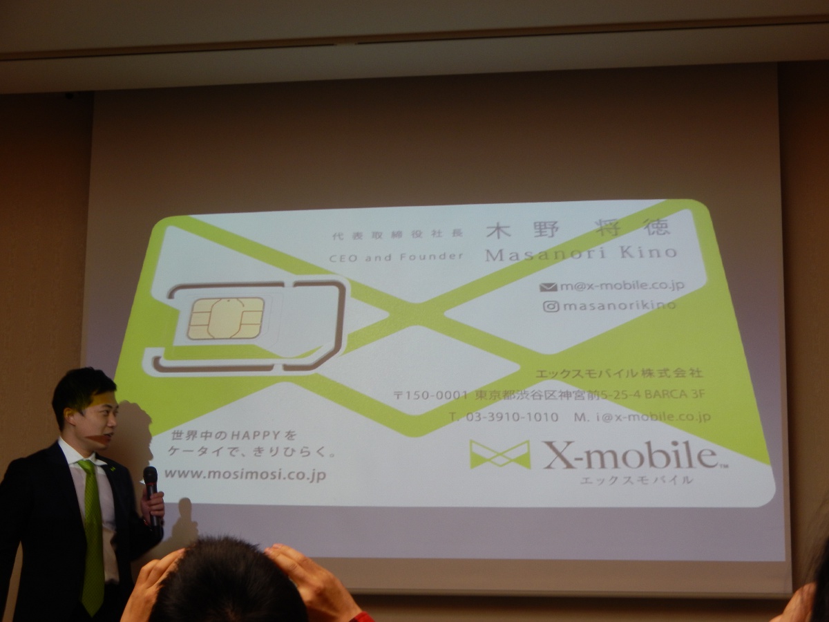 続いての登壇者は、主にMVNO事業を行なっているエックスモバイル社長の木野将徳氏。同氏はエックスモバイルの事業展開などについて語った。