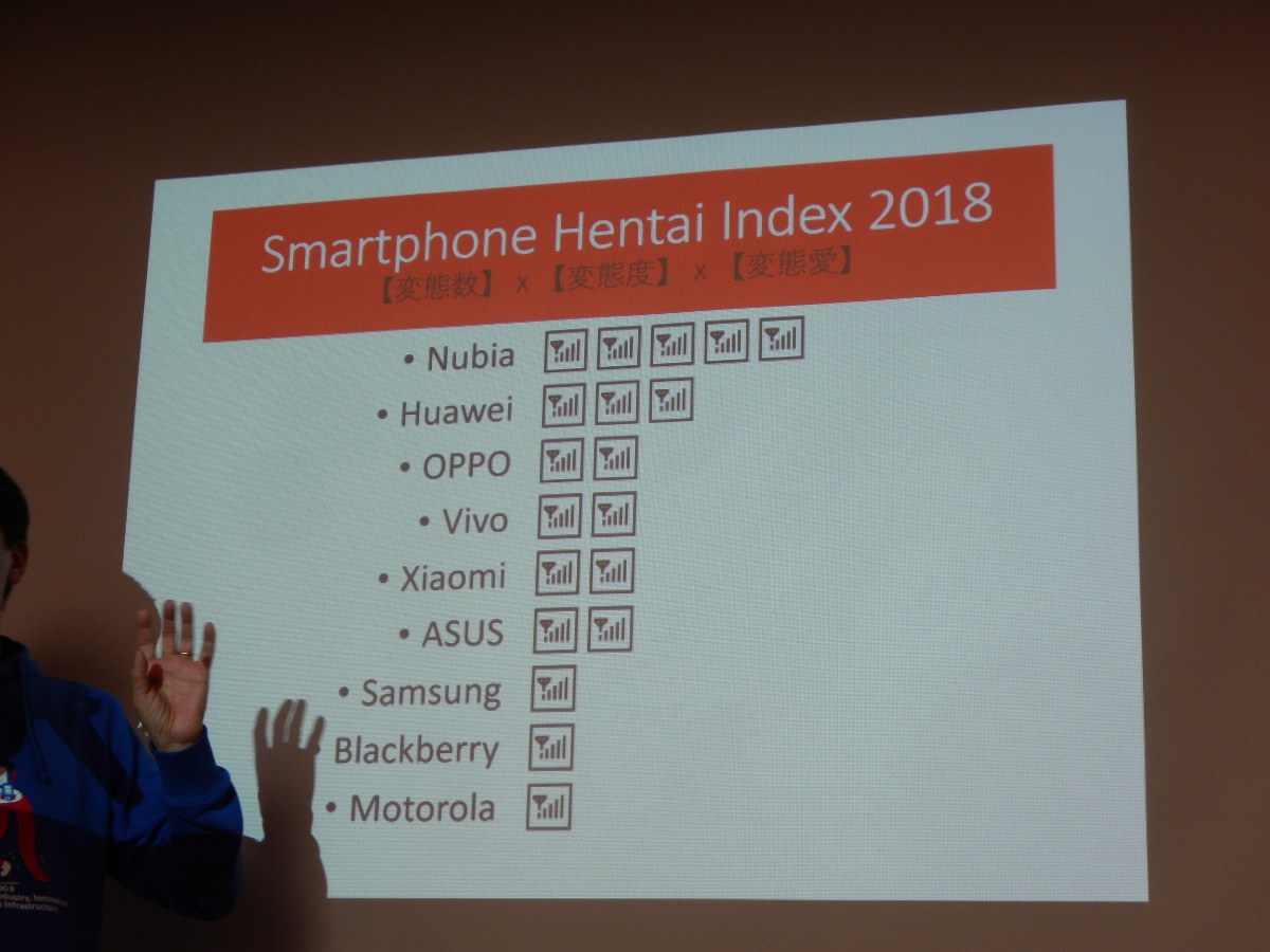 同氏は、「変態数×変態度×変態愛」で、変態レベルを図式化した「SHI(Smartphone Hentai Index)」を作成。最もSHIが高かったのはNubiaだった。