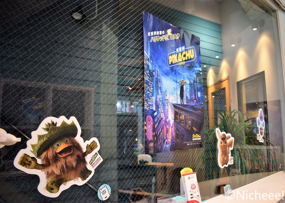 スタッフも可愛い「名探偵ピカチュウ」Tシャツを着てサービスチュウ!
