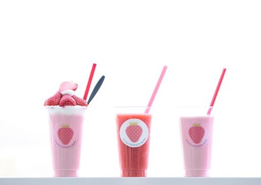 濃厚なチーズがアクセントになった「スムージーパフェ いちごチーズ(左/900円)」、イチゴ本来のおいしさを味わえる「ボンボンスムージー(中/600円)」、「いちごチーズスムージー(右/600円)」などのドリンク系も充実。