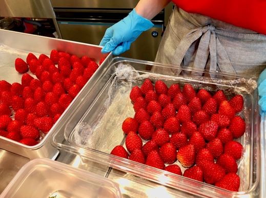 新鮮ないちごをたっぷり用意。オーダー後に作るので出来たてのおいしさを楽しめるのも魅力。静岡県産をはじめその時期ごとに一番おいしいいちごを全国から仕入れるのだそう。