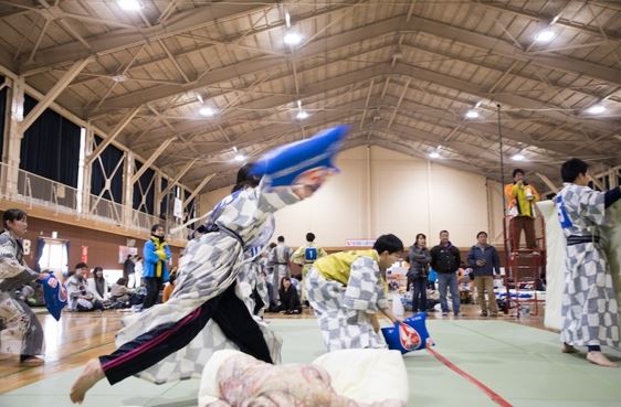 これは修学旅行で定番の「夜のまくら投げ」に特別ルールを設けた“スポーツまくら投げ”で、2010 年に日本初の競技化。毎年600名近くの参加者が集い、数多くのマクラ戦士(枕投げ選手)達の激闘が繰り広げられてきた。