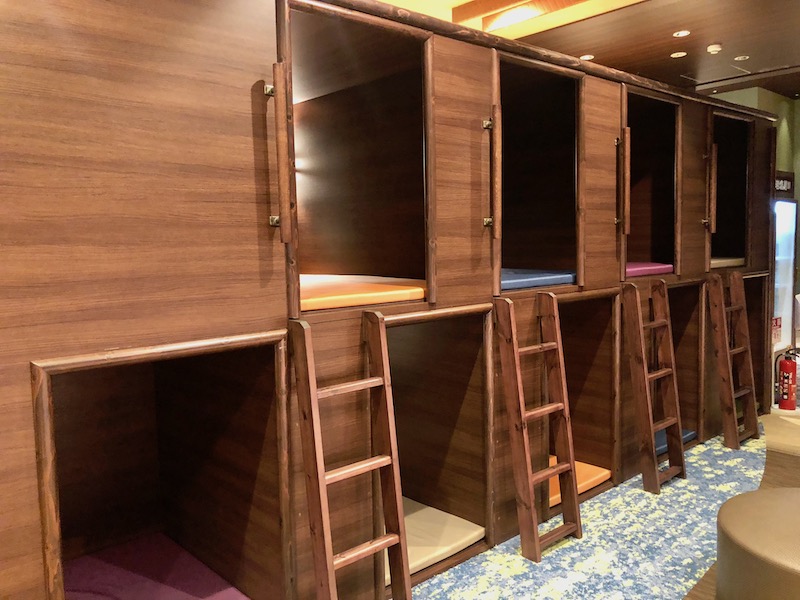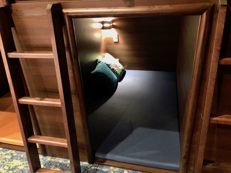 半個室型スペースの2段BOX「ログシェルター」も新設。本を読みながら寝落ちするというような至福のひと時も楽しめる。