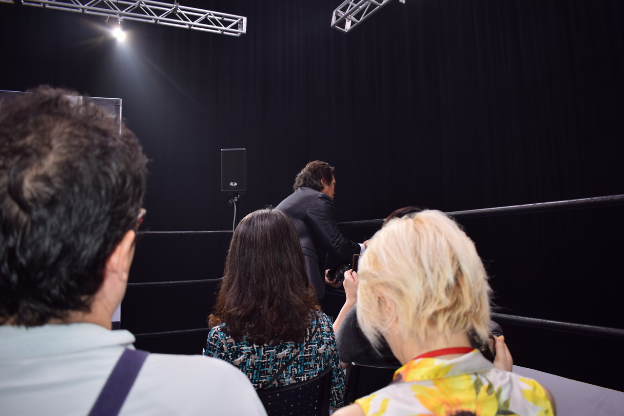 そんななか、いよいよ長州力本人が登場!会場は、本物のプロレスリングを模した小さなリングが設営されており、入場曲こそなかったが、ロープをくぐってリングインする姿は現役時代を彷彿とさせた。