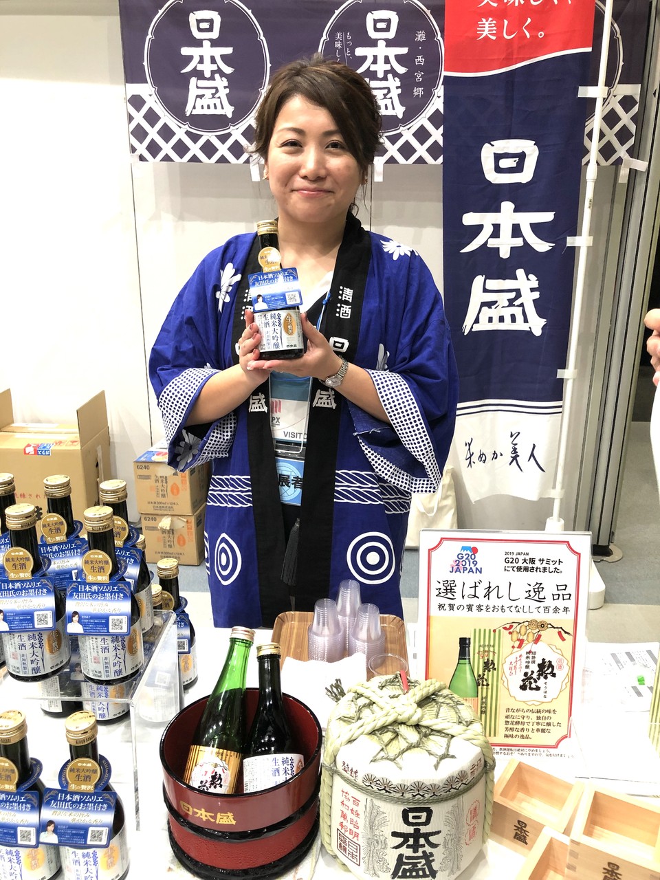 ハワイの和食店の日本酒イベントを取材した時、現地の方に好評だったお酒と言えば 日本盛(兵庫) の生原酒ボトル缶。200mlのアルミのボトル缶は国内のスーパーでも売られていますが、同じように海外でもアルミ缶のかたちで飲まれていることを知って先日驚きました。日本盛のブースの広報・森さん(上の写真左)は、背景にある「米ぬか美人」の文字がぴったりの笑顔。ありがとうございました!