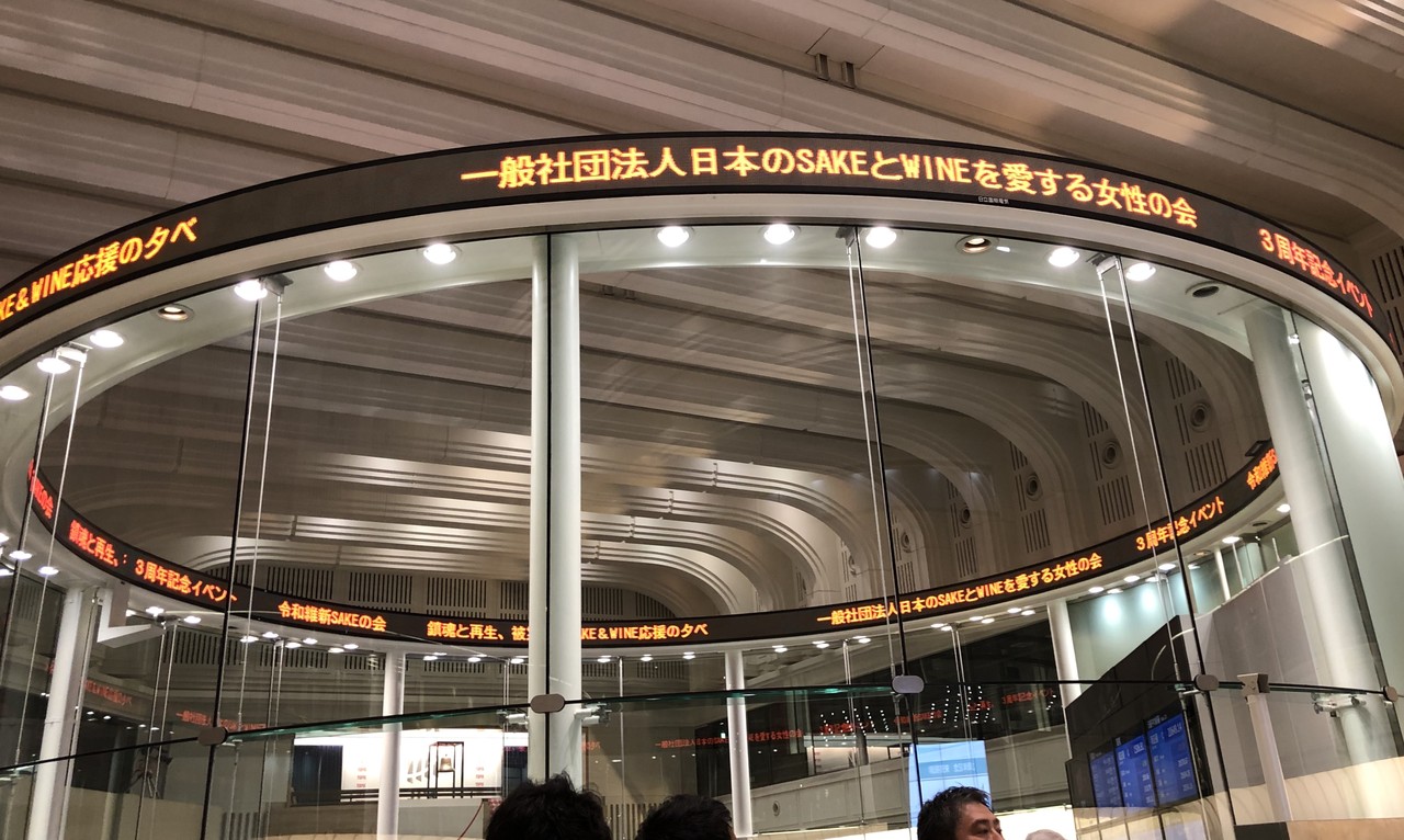 設立1周年では 小池都知事も参加されて外国人記者クラブにて開催 、 設立2周年では神田明神で開催 、そして今回は東京証券取引所にて開催!毎回趣向を凝らしたイベントが開かれ、酒好きファンの話題をさらっています。