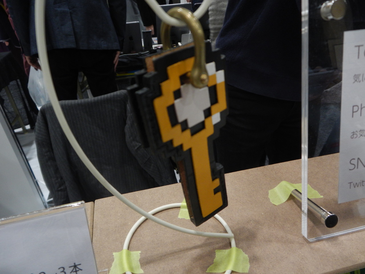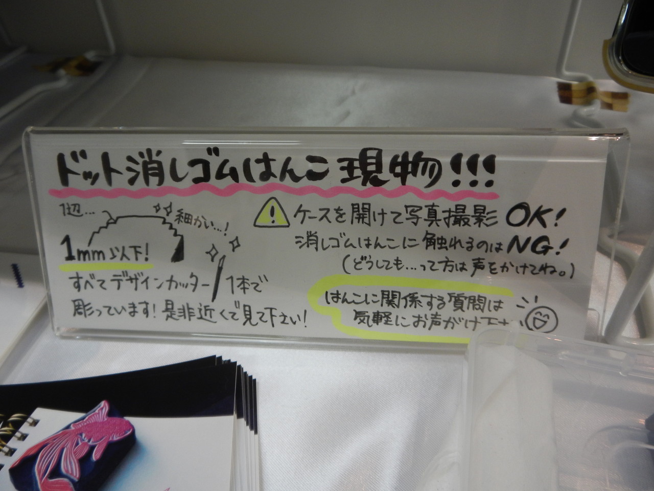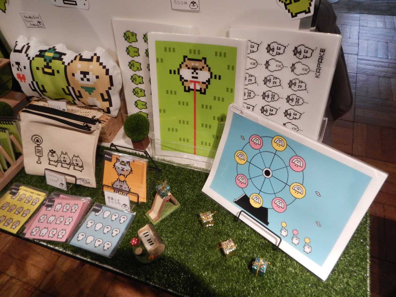 消しゴムはんこでピクセルアートの世界を表現する「京楽堂」。今回は消しはんグッズ頒布の他に、作品制作で実際に使われた消しはんや、コラボ作品も展示していた。