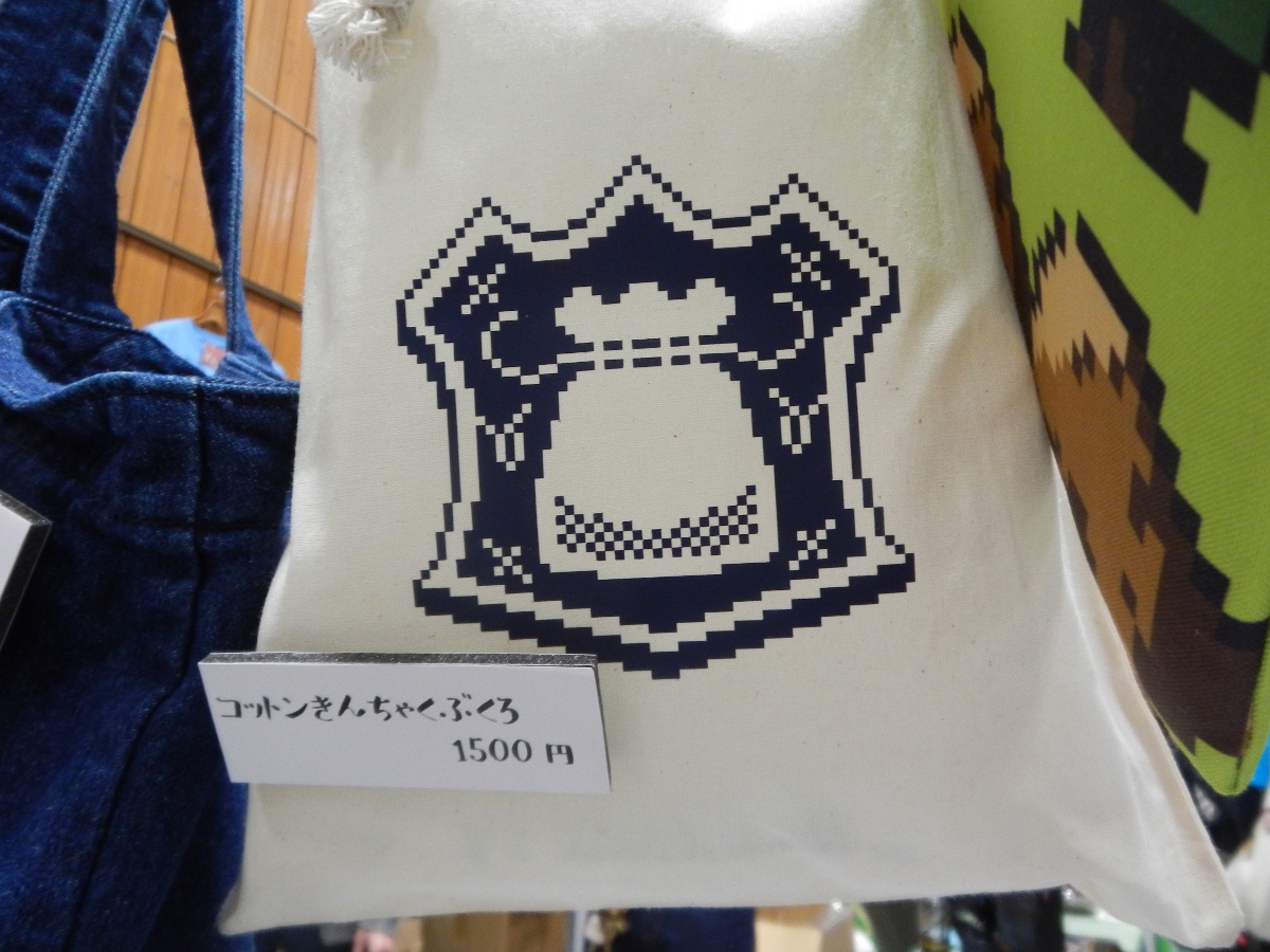 巾着にドット絵で巾着が描かれた「コットンきんちゃくぶくろ」。