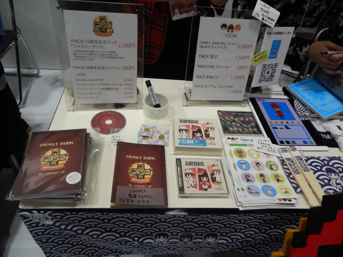 チップチューンユニット「YMCK」。PAP5の6日前(12月3日)には、代官山UNITにて結成15周年記念ワンマンショー「Magical 8bit Land」を開催。同日に発売となったオフィシャルブック「ファミリーブック」や「15周年記念ピンバッジ」などがあった。