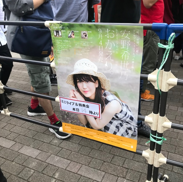 ●歌のイベントの後はCD購入者の方への特典として、ステージ上にいる安野さんとファンの方が順番に直接ふれあえる神イベントを開催していたのですが、ステージに上がる事が出来ない車椅子で来られていたお客さんのために、このふれあいイベント開始時にまず安野さん自らがわざわざステージを降り、その方の側まで行ってご挨拶をされている所を目撃!