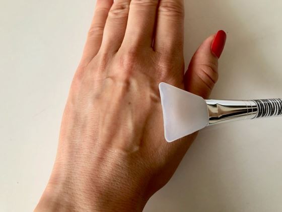 セカンドスキン膜が完全に乾燥したら指でやさしく剥がしていきます。肌に残った膜は水かぬるま湯で落とせばOK。