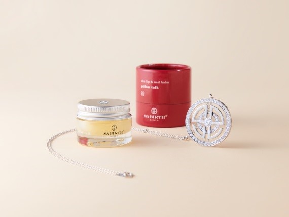 「uka lip & nail balm pillow talk」は、厳選された植物オイルや、こだわりのハーブエキスを配合し、唇や爪を保湿。イランイラン・ダマスクローズ・ジャスミンなど、女性らしさを高めるフローラルフレーバー。今回限定で、ボルドーを基調としたデザインに「SA BIRTH GINZA」のロゴをあしらったスペシャルパッケージになっている。