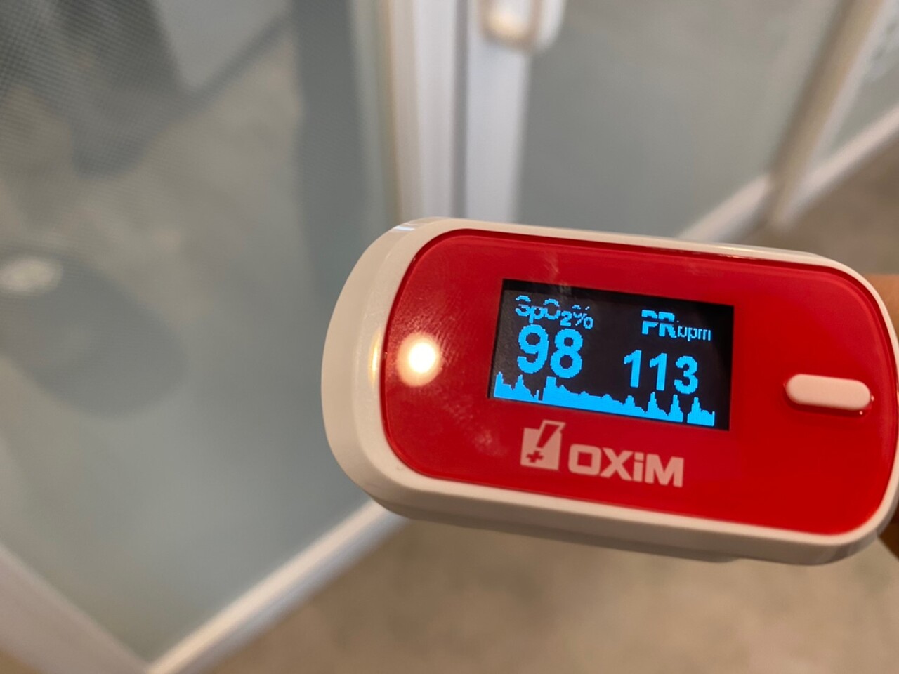 運動によって酸素濃度が一時的に下がることで活性化が促され、通常の血中酸素濃度までもどるそうです。(画像は運動終わりに撮影したもの)