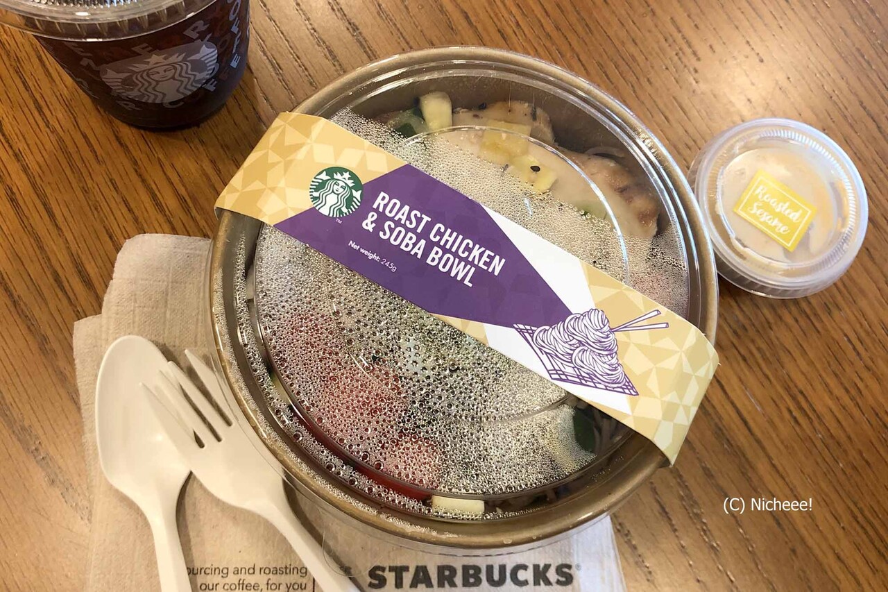 味はというと、普通の日本のそばにただチキンとサラダがのっているだけなので、いたって普通というか、これでちょっと腹の足しにはなるかな、という感じでした。決して不味くはないし、スターバックスでサンドイッチだけでなくこういうサラダ、軽食があるのはやはりありがたいです。日本にはないので。
