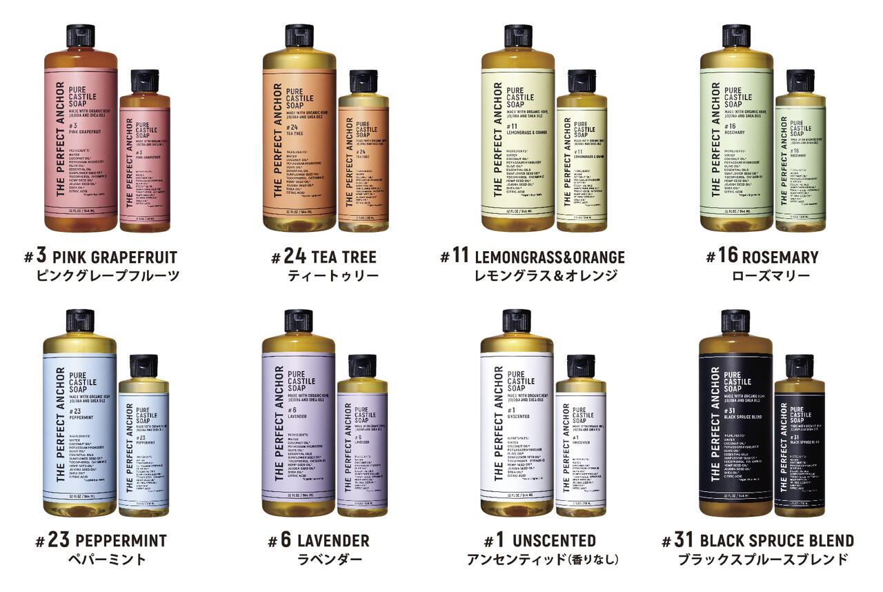 “毛穴の汚れをさっぱり落としながらも肌がつっぱらずうるおう”美肌ケアをバスタイムで解決するために世界中から選りすぐったのは、「植物界の宝石」と呼ばれ、肌に必要なリノール酸、αリノレン酸、γリノレン酸、ω-3-ステアリドン酸を豊富に含むヘンプ油。皮脂のバランスを調整し、ビタミンA、E、Dとアミノ酸が肌に潤いを与えてくれるホホバ油。肌の表面に潤いの膜をつくり、水分をしっかり肌に閉じ込め、ハリを出してくれる保湿効果が抜群のシア脂油の3つである。