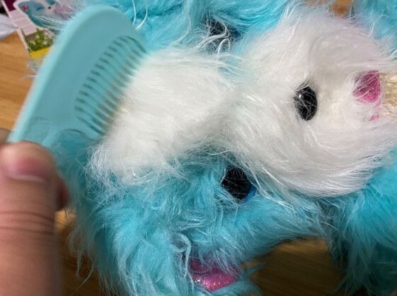 中にもカンタンな取り扱い説明が書かれている親切設計。そして、毛玉。これ、引っ張ると、いきなりブルブル震えて、鳴き始める。可愛い…けど、やばい、なぜか焦る。早く助けてあげなきゃ!という気になるから不思議だ。