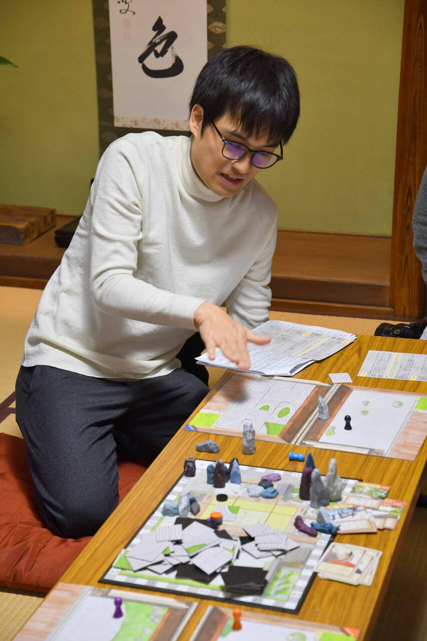 その枯山水ボードゲーム、初めてプレイしてみました。ゲームを開発したのは、ボードゲームデザイナーの山田空太さん。