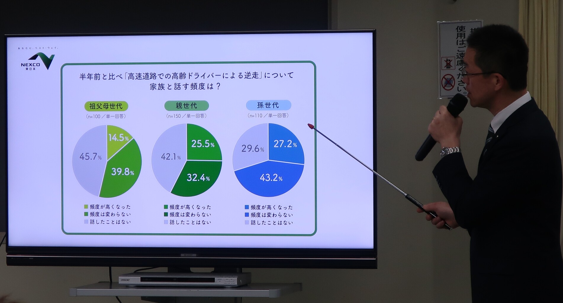 NEXCO東日本が2018年から始めた「家族みんなで 無くそう逆走」プロジェクトの本年度テーマは「三世代免許」。祖父母世代・親世代・孫世代の三世代全てが車の運転免許を持つタイミングで、いつもは話題に出しづらい「高齢ドライバーの運転や逆走」について、新たに免許を取得した孫世代が同じ“ドライバー”という立場で祖父母世代と話し合う機会にすることを提案しています。