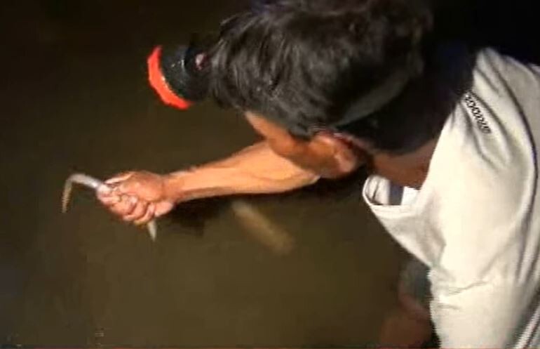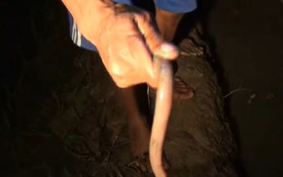 インドネシア・東ジャワ州の一部の村人たちの日常的な活動の一つである夜のタウナギ狩り。お米の収穫後になると住民たちは夜中に田んぼに出向き、田んぼの中に腕などを突っ込んでタウナギを捕獲する。インドネシアにおける毎年二度目の稲の収穫後に村人たちによって行われてるルーティンワークの一つだという。