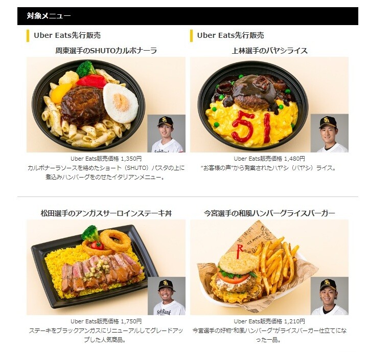 しかも、今急成長中の「Uber Eats」を利用しての、本拠地PayPayドーム内で販売するグルメのデリバリーを実施中。