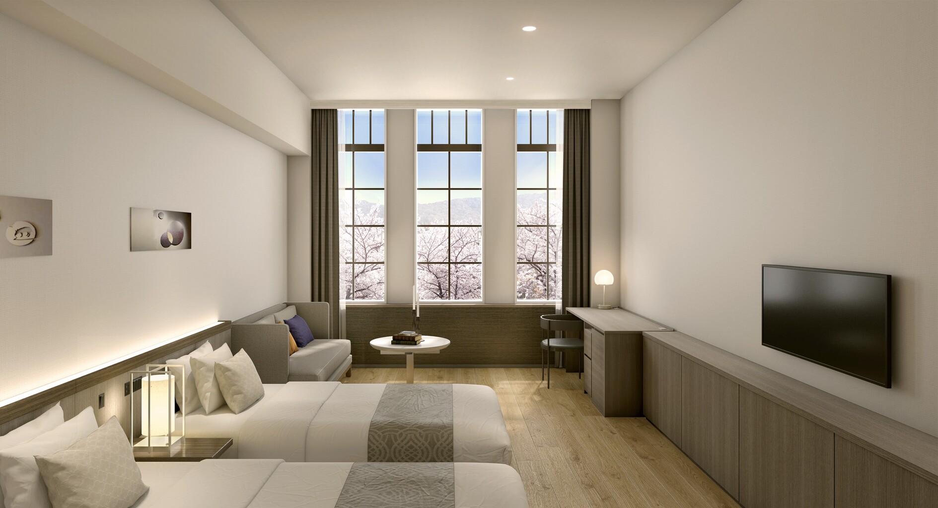 客室は、京都最古のコンクリート造校舎をリノベーションした「Schoolhouse棟」5タイプ20室、京都らしさを近代的に表現した「新築棟」6タイプ164室の全184室で構成。