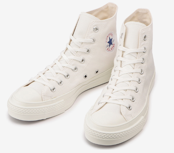 オールホワイトで仕上げたMADE IN JAPANのオールスター。昨年のOXカットに次ぎ、HIカットモデルを発売。