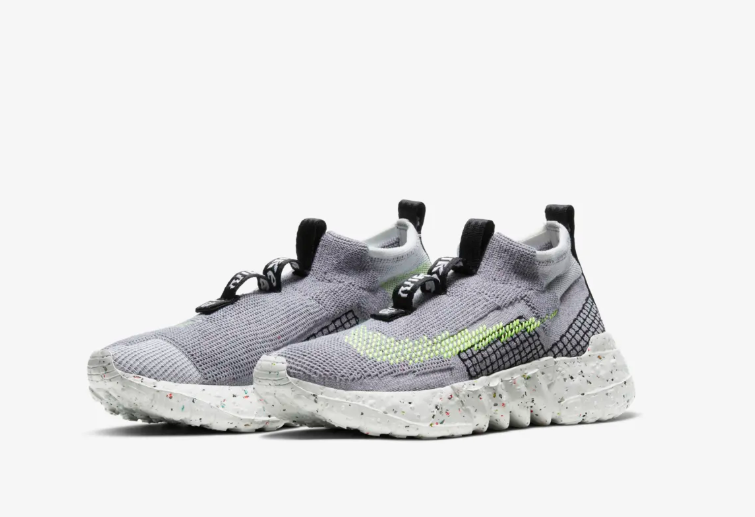「Space Waste Yarn(宇宙ごみの糸)」と呼ばれるアッパーには、ペットボトル、Tシャツ、糸の廃棄物から生まれたリサイクルポリエステル素材を約90%使用。快適性を最大限まで高めるため、部分的にタオル地を使ってパターンを配している。柔らかいCrater Foamミッドソールには、Nike Grindと複数のフォームの混合物をミックス。優れた安定感を持つユニークなデザインに仕上げている。インソールには、Nikeのネクスト% ランニングシューズで究極の履き心地を生み出すクッショニング、ZoomXフォームの廃棄物を使用している。
