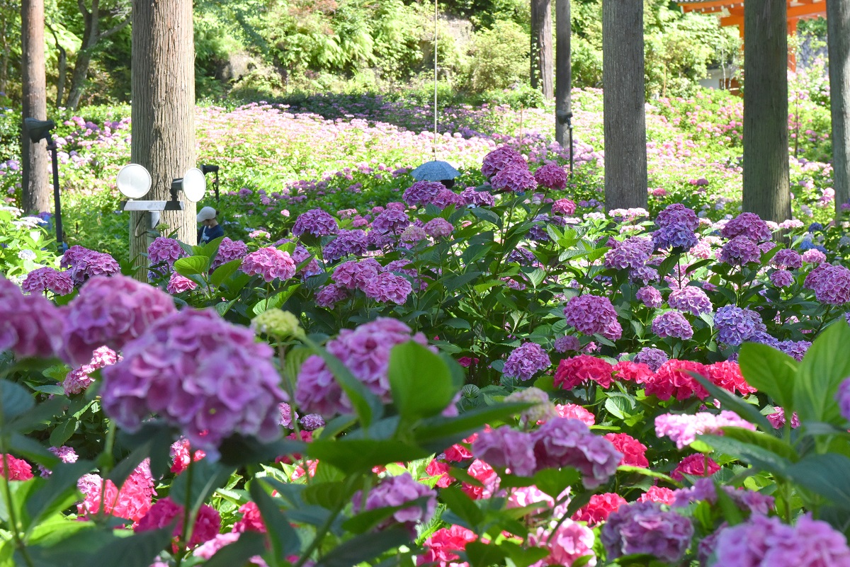 あじさいが美しい寺として知られる、京都・宇治の三室戸寺。毎年6月には大勢の観光客が訪れる。