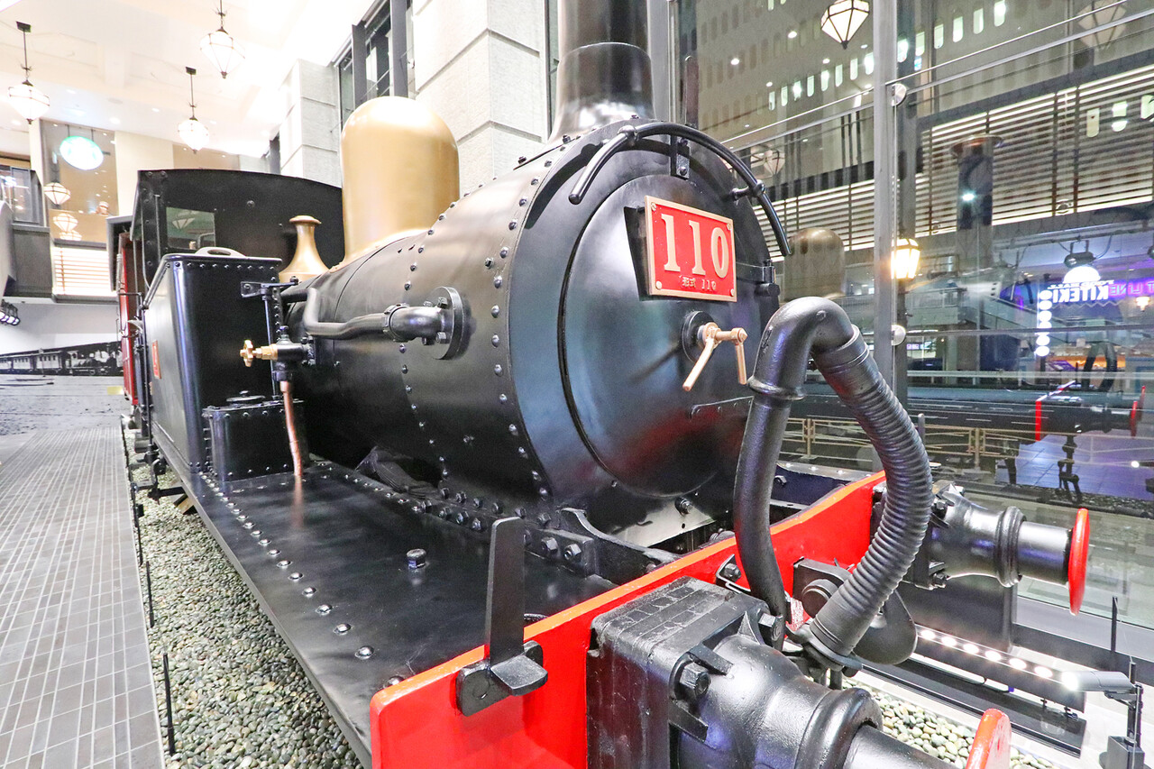 1階のホールには「旧横ギャラリー」として、鉄道発祥の旧横浜駅にちなんだ展示が行われている。エスカレーター前には、日本で初めて使用された蒸気機関車「110形」が展示されており、鉄道マニアにはたまらない。ちなみに、この110形蒸気機関車は1961年に鉄道記念物に指定され、青梅鉄道公園(東京都青梅市)に静態保存されていたものを移設した貴重なものなので一見の価値ありだ!