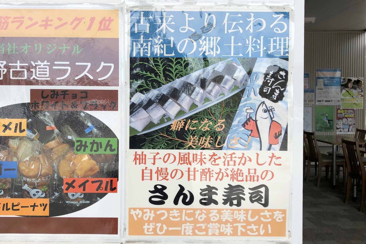 道の駅の入口に、秋刀魚寿司の張り紙を見つけた。