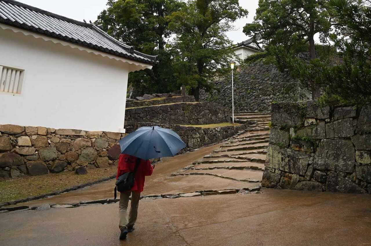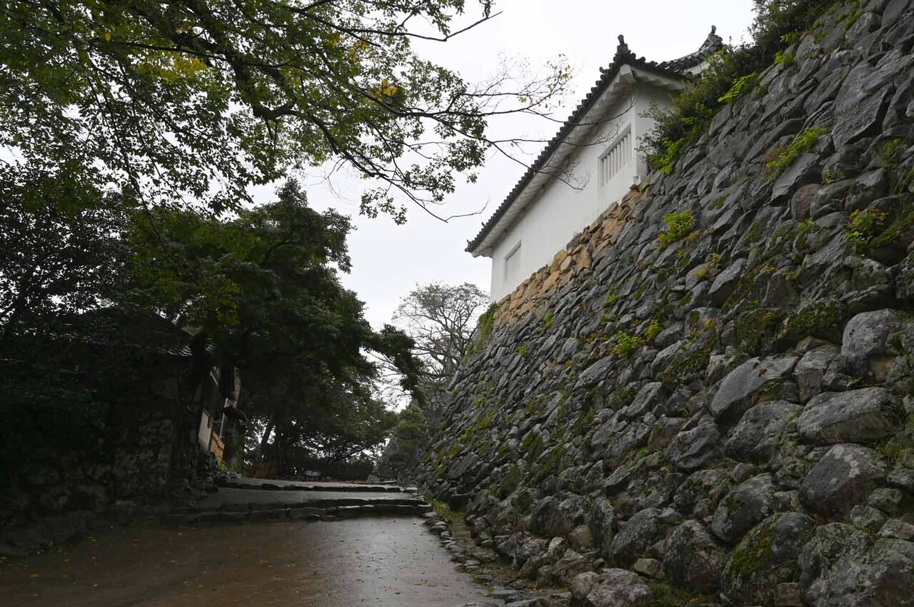 本丸に続くなだらかな石階段。この階段も斜めに上がっていく。