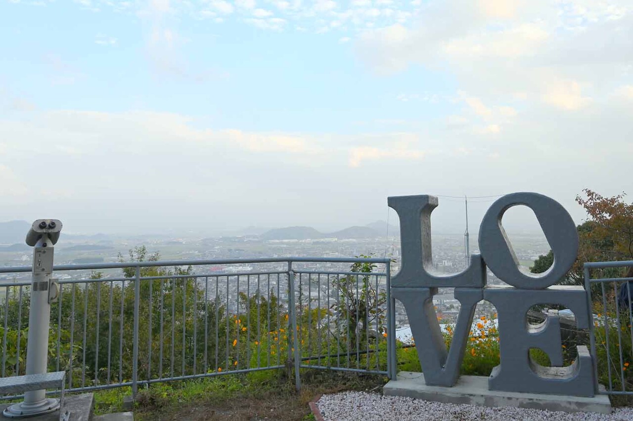 ほかに、本堂の前に「恋人の聖地」らしい撮影スポット、ハート形の絵馬、さらに、本堂から少し下りた場所にある展望間の前に「LOVE」のオブジェもある。まさに恋愛のパワースポット。