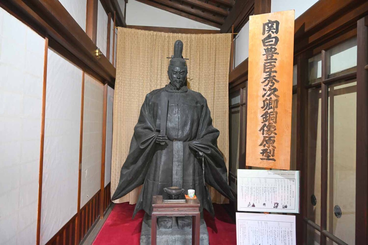 本堂内は見学もでき、山麓の八幡公園に設置してある秀次公の銅像に使われた原型もある。