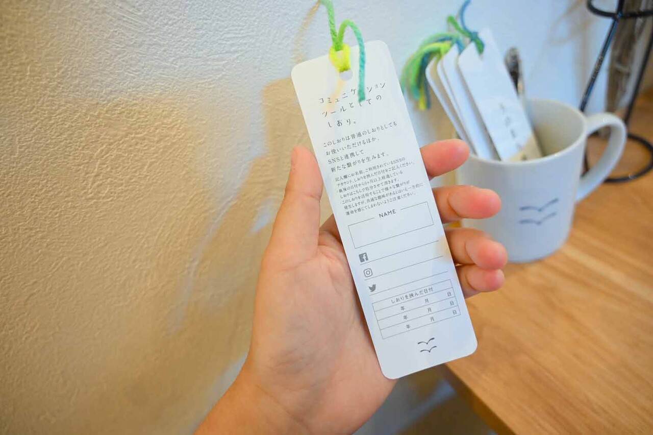 ¥°¥é¥¹¤ËÉÁ¤«¤ì¤Æ¤¤¤¿¡Ö¤·¤ª¤ê¡×¤Ï¡¢¼Âʪ¤¬Å¹Æâ¤Î¥Æ¡¼¥Ö¥ë¤ËÃÖ¤¤¤Æ¤¢¤ë¡£¤·¤ª¤ê¤Î΢¤Ë̾Á°¤ÈSNS¤Î¥¢¥«¥¦¥ó¥È¤¬µÆþ¤Ç¤¡¢ÆÉ¤ó¤ÀËܤˤϤµ¤à¤È¡¢¼¡¤Ë¤½¤ÎËܤò¼ê¤Ë¼è¤Ã¤¿¿Í¤¬¤â¤·¡¢¤½¤Î¤·¤ª¤ê¤òÌܤˤ·¤ÆÏ¢Íí¤ò¤¯¤ì¤ë¤«¤â¡¢¤È¤¤¤¦¡¢»Å³Ý¤±¡£