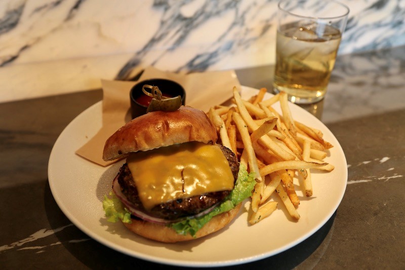 「PUCK BURGER LUNCH」(1,800円/税込)はハンバーガーにサラダ、スープがセットに。ジューシーなパティ、ふんわりしたバンズや瑞々しい野菜が絶妙なハーモニーを奏でる。サクッと揚がったフレンチフライとの相性も抜群だ。