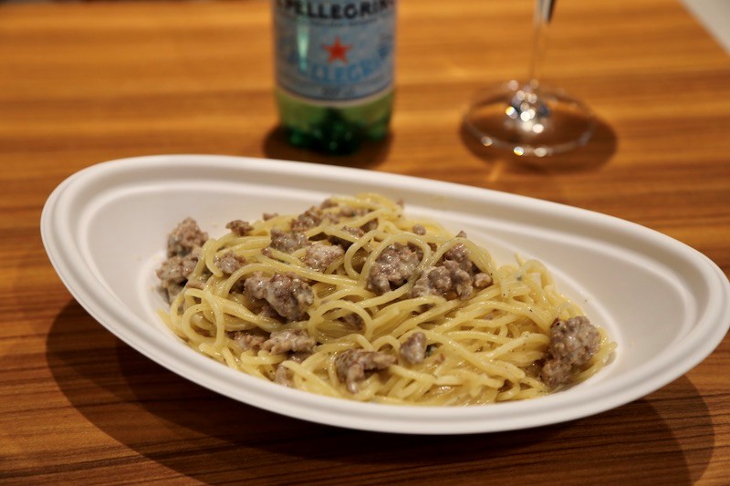 フードメニューも多彩な品揃え。「自家製サルシッチャのゴルゴンゾーラクリームソース」(1,200円/税込)は深みあるコクと風味が秀逸。ワインとのマリアージュも堪能したい一品だ。