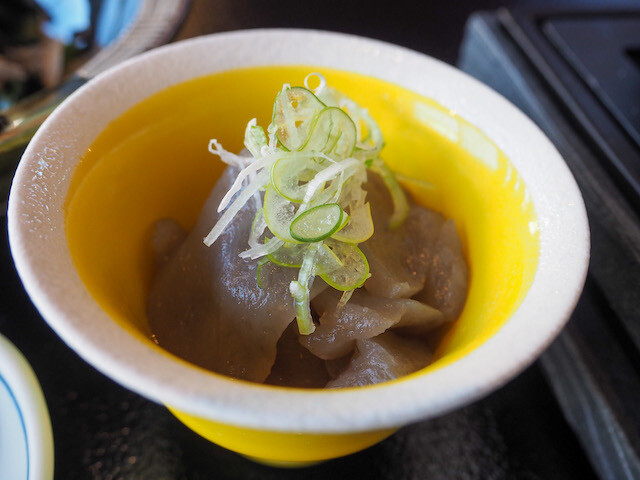 酢味噌をつけていただく自家製こんにゃくは滋味深く、お代わりしたいほどだった(メニューは変わる可能性があります)。