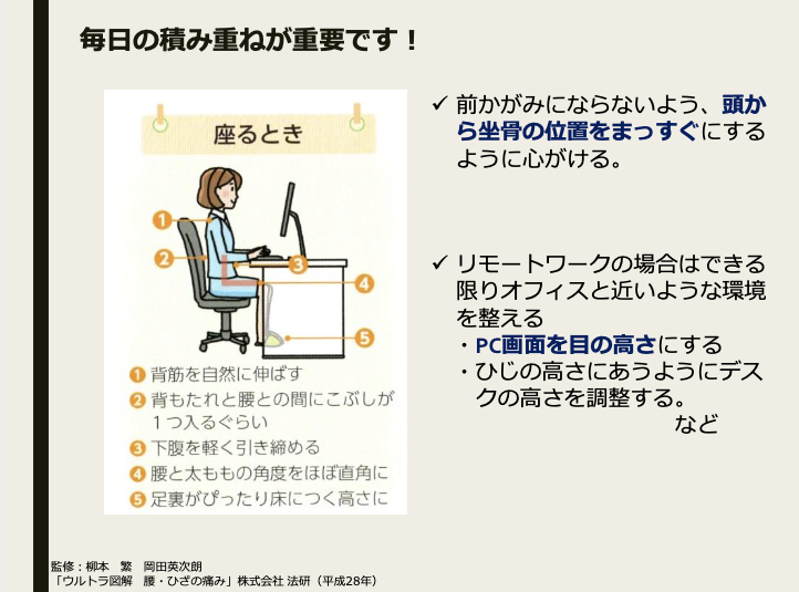 また在宅勤務の普及により、腰痛がひどくなったという回答者も目立った。岡田医師は「自宅でもオフィス環境を意識することが大切。可能であればPCモニターを使って画面を目の高さに調整し、頭から坐骨の位置をまっすぐにするように心がけることも重要です。仕事の合間にストレッチを行うのも良いでしょう」と話す。
