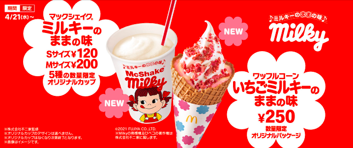 マクドナルド × 不二家 ミルキーがコラボレーション4/21(水)〜期間限定で登場!