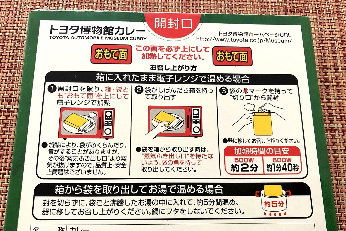 その「トヨタ博物館カレー」を、愛知県豊田市の「トヨタ会館」にあるミュージアムショップで手に入れた。1人前400円。2.5人前880円もあった。※すべて税別