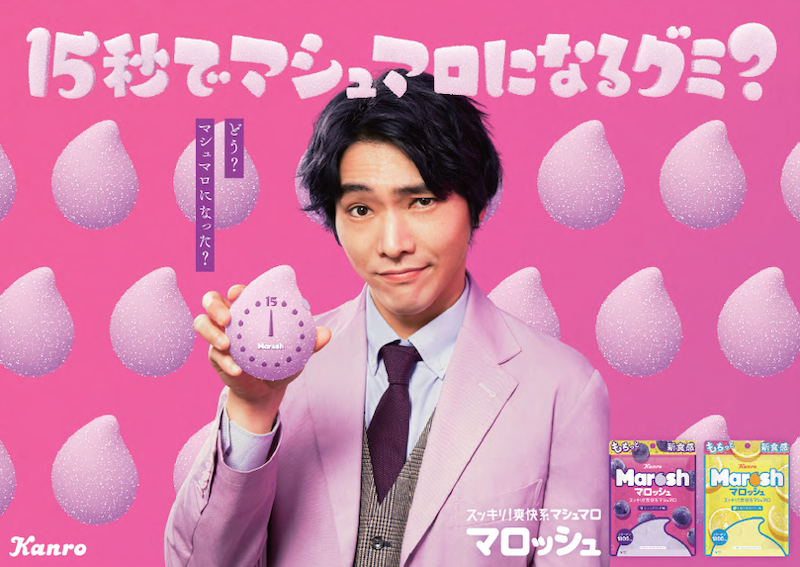 不思議な食感が話題を呼んだことから、“15秒でマシュマロなるグミ”をコミュニケーションワードに、プロモーションを実施していく。イメージキャラクターには俳優の柄本佑さんを起用した。