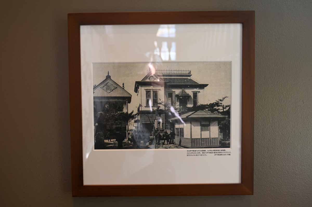 店内には、見どころが多い。旧駅舎の写真も、説明書きとともに飾られていた。