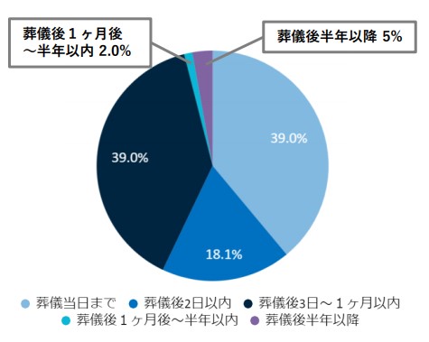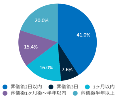 41.0%が葬儀後2日以内に訃報を受け取っている一方で、35.4%が1ヶ月以上経過してから訃報を受け取っており、参列だけでなく、訃報を送るタイミングにも変化があったことが伺えます。