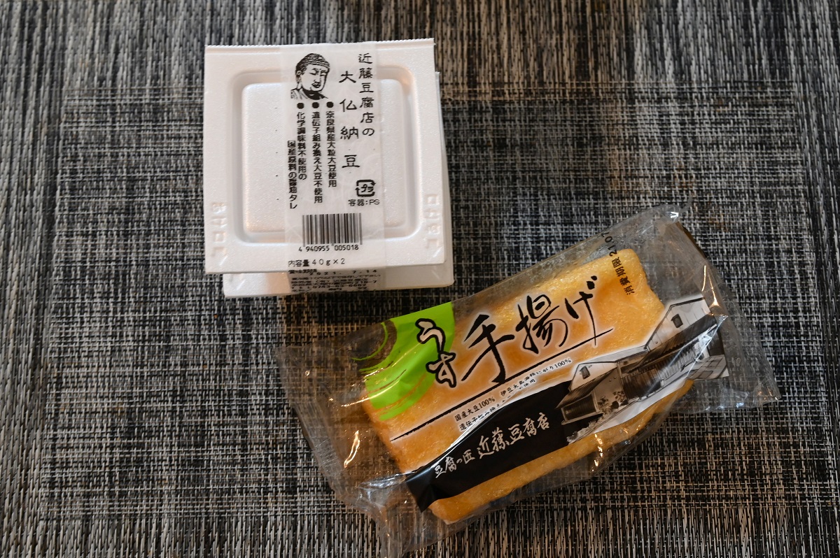 奈良の豆腐といえば「近藤豆腐店」が有名。豆腐作り70年、厳選素材で作り上げられた職人技の豆腐製品はファンが多い。豆腐のほか、揚げ商品、納豆などもあり、スーパーで販売している。保冷バッグがないと遠方まで持ち帰るのは厳しいが、一度食べる価値は大いにある。