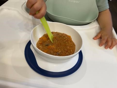 まず、パッケージを空けて感じたのは、どれもとにかく匂いがいい。食べる前から子どもも笑顔ではやく食べたいとスプーンをスタンバイ!「鶏そぼろのふわふわ親子丼」は、卵がトロトロふわふわ。野菜ペーストが入っているので、野菜もしっかり摂れるのも嬉しいですね。