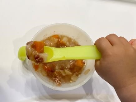 たしかに、肉じゃがのお肉は大きかったですが、柔らかく12か月の子どもでも難なく食べていました。