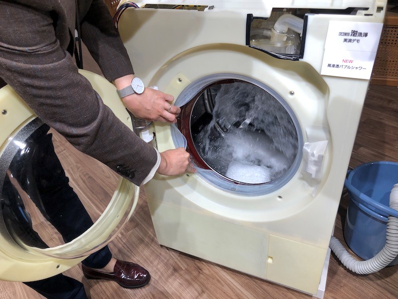 洗浄力も従来品より強化した。泡生成ボックス(泡の力)、高浸透バブルシャワー(水の力)、新形状バックフィルターによるもみ洗い(機械の力)によって、高度な洗浄力を実現。水の一部を窓パッキングの裏に流す構造により、洗濯時に洗濯機の窓パッキンにたまりやすい、糸くずも洗い流す。掃除の手間も大幅に軽減されるだろう。