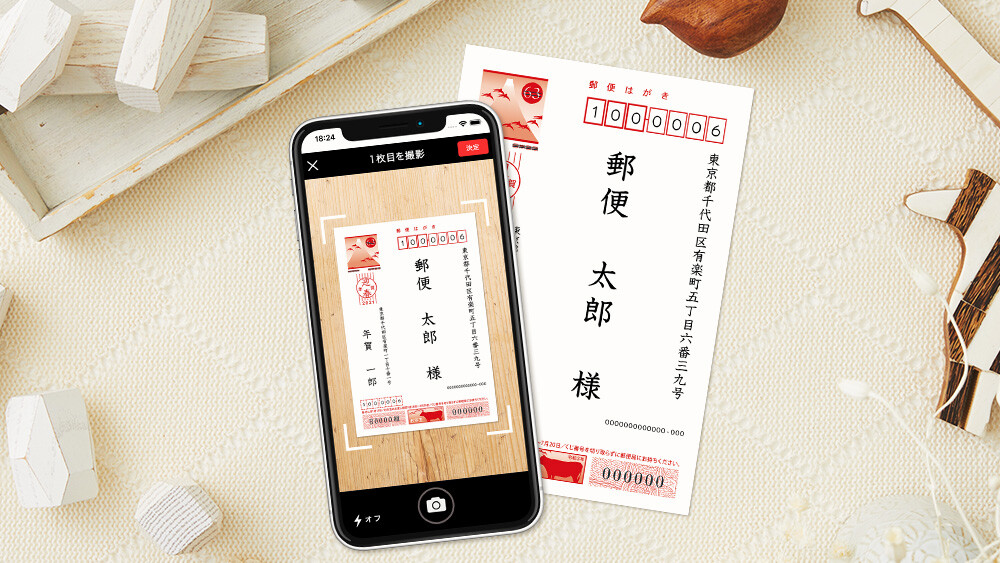 お手元のはがきの宛名部分を撮影するだけで、簡単にデータ化し宛先帳に登録することができる「宛名スキャン」2014年11月のご提供開始以来ご好評を頂いている「スマホで年賀状」の定番サービスです。