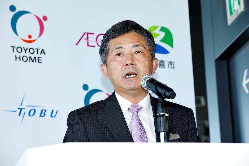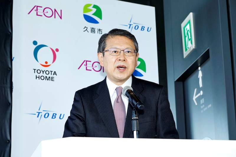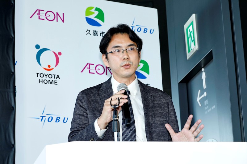 発表会には久喜市、東武鉄道、トヨタホーム、イオンリテール、早稲田大学小野田研究室それぞれの代表者が登壇。プロジェクトを立ち上げた背景や各社の役割が伝えられた。